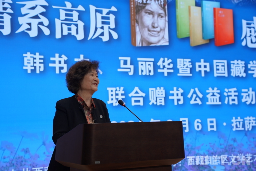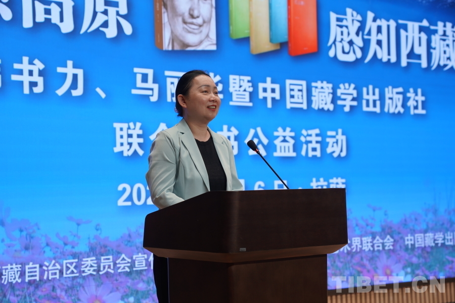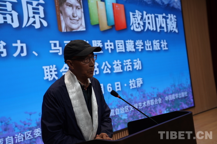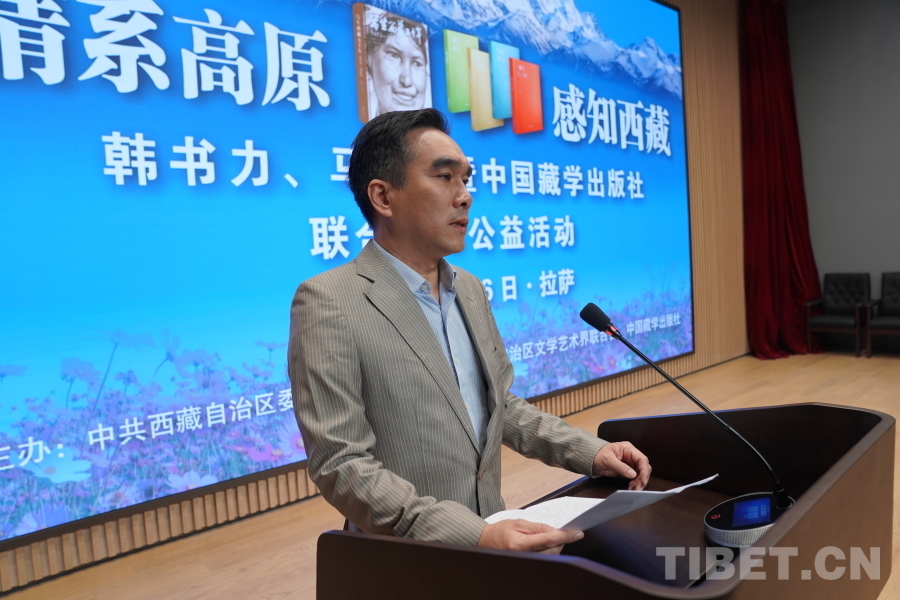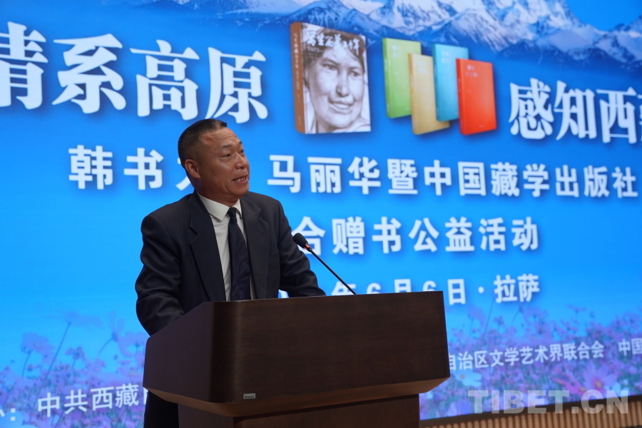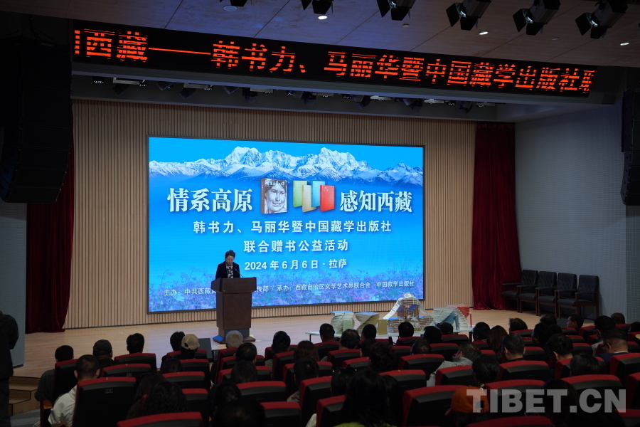 中國西藏網訊 6月6日上午,由西藏自治區(qū)黨委宣傳部主辦,自治區(qū)文聯、中國藏學出版社承辦的“情系高原 感知西藏——韓書力、馬麗華暨中國藏學出版社聯合贈書公益活動”在西藏美術館學術報告廳舉辦。自治區(qū)黨委宣傳部副部長何瑞,中國藏學出版社社長洪濤,自治區(qū)文聯黨組成員、副主席陳人杰,自治區(qū)黨委原常委、自治區(qū)政協(xié)原副主席德吉措姆,自治區(qū)文聯原主席、西藏美術家協(xié)會原主席韓書力,中國藏學出版社原總編輯、自治區(qū)文聯原副主席、西藏作家協(xié)會原副主席馬麗華等參加活動。