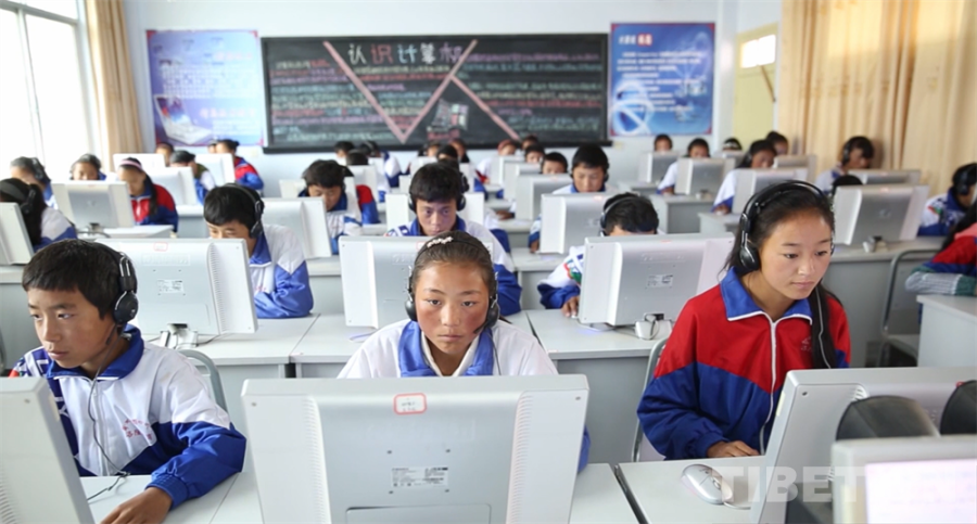 圖為昌都市洛隆縣學(xué)校配置的計算機(jī)教室
