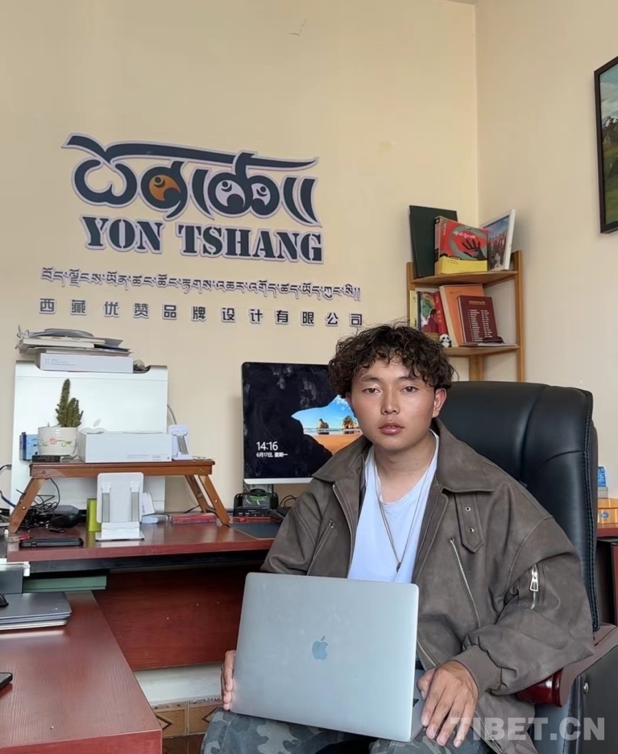 次仁頓珠是學(xué)院2022年平面設(shè)計(jì)專業(yè)的畢業(yè)生,也是全國(guó)第一屆職業(yè)技能大賽“西部技能之星”獲得者,我們到訪時(shí)他剛好回校做單元展。次仁頓珠畢業(yè)后和四個(gè)合伙人一起在拉薩創(chuàng)業(yè),創(chuàng)辦了優(yōu)贊品牌設(shè)計(jì)有限公司,主要業(yè)務(wù)包括產(chǎn)品包裝設(shè)計(jì)、logo設(shè)計(jì)和品牌設(shè)計(jì)。創(chuàng)業(yè)伊始全靠幾個(gè)合伙人自己出去推銷,如今經(jīng)過(guò)老客戶口口相傳,很多客戶主動(dòng)來(lái)找他們,生意越來(lái)越好?!皠?chuàng)業(yè)兩年多,我大概分紅了40多萬(wàn),今年我們幾個(gè)合伙人都買了車。未來(lái)我們計(jì)劃擴(kuò)大公司的店面,好好裝修,然后開(kāi)始線上直播,以后在拉薩買了房子從昌都接?jì)寢屢黄饋?lái)住。”次仁頓珠向我們介紹,笑容中帶著羞澀與驕傲。