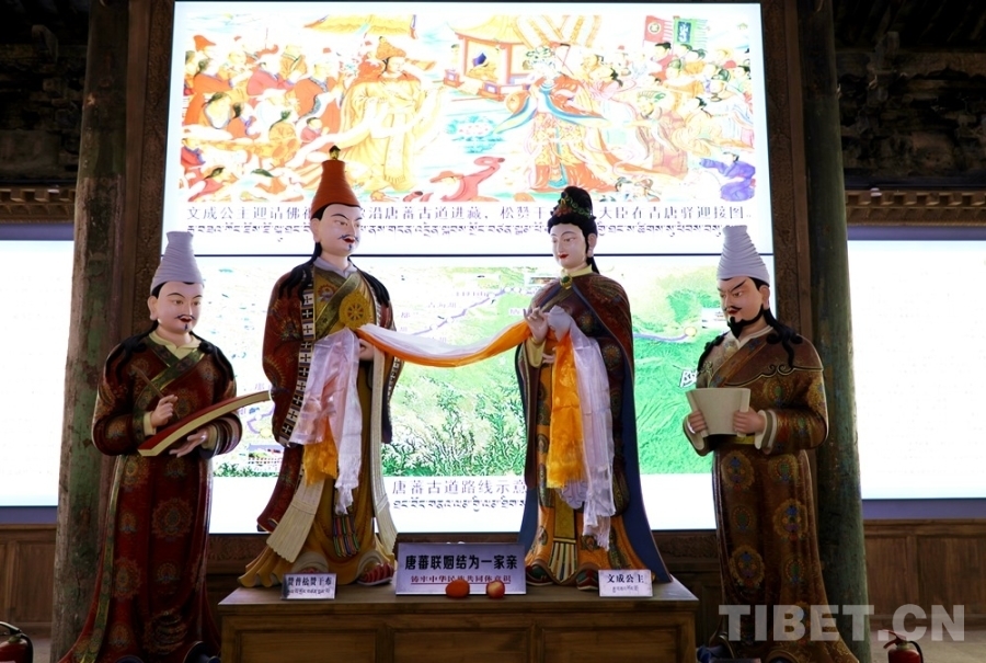 圖為宏覺寺鑄牢中華民族共同體意識體驗館內(nèi)“唐蕃聯(lián)姻”塑像 攝影:王茜