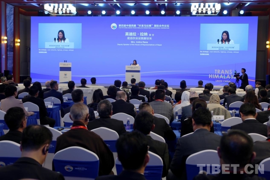 圖為第四屆環(huán)喜論壇開幕式暨主旨論壇上尼泊爾眾議院副議長(zhǎng)英迪拉·拉納致辭 攝影:王佳豪