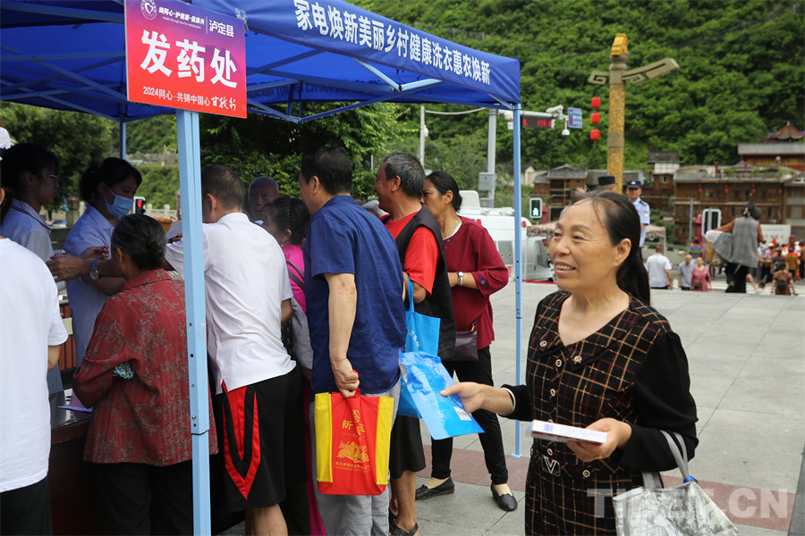 圖為義診現(xiàn)場(chǎng)免費(fèi)向當(dāng)?shù)鼐用癜l(fā)放藥品 攝影:登真巴珍