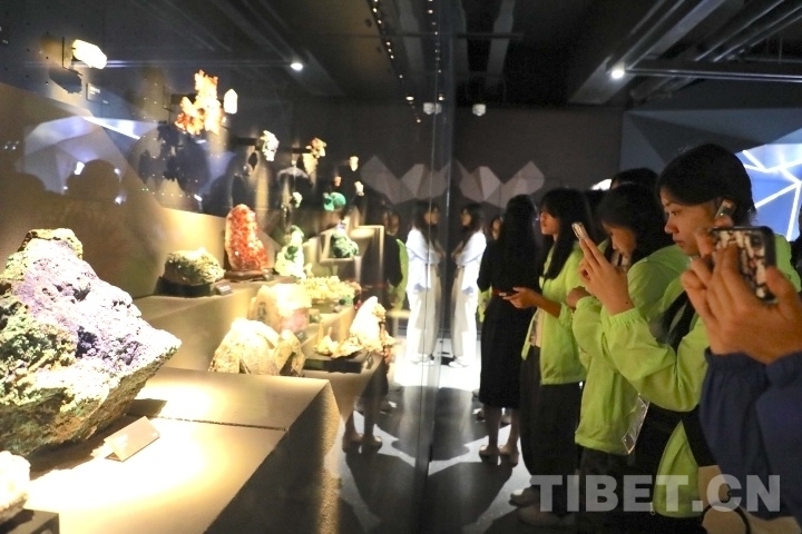 上午9時(shí),身披一襲金色霞衣的青海省自然資源博物館,如一座知識(shí)燈塔,引領(lǐng)這些香港學(xué)子們步入時(shí)光長廊。在“礦物晶體廳”,一堂生動(dòng)的地質(zhì)課正以最直觀的方式展開。學(xué)生們緊跟講解員的步伐,對每一種礦物質(zhì)都充滿好奇。他們提出的問題,既天真爛漫又不乏機(jī)智。