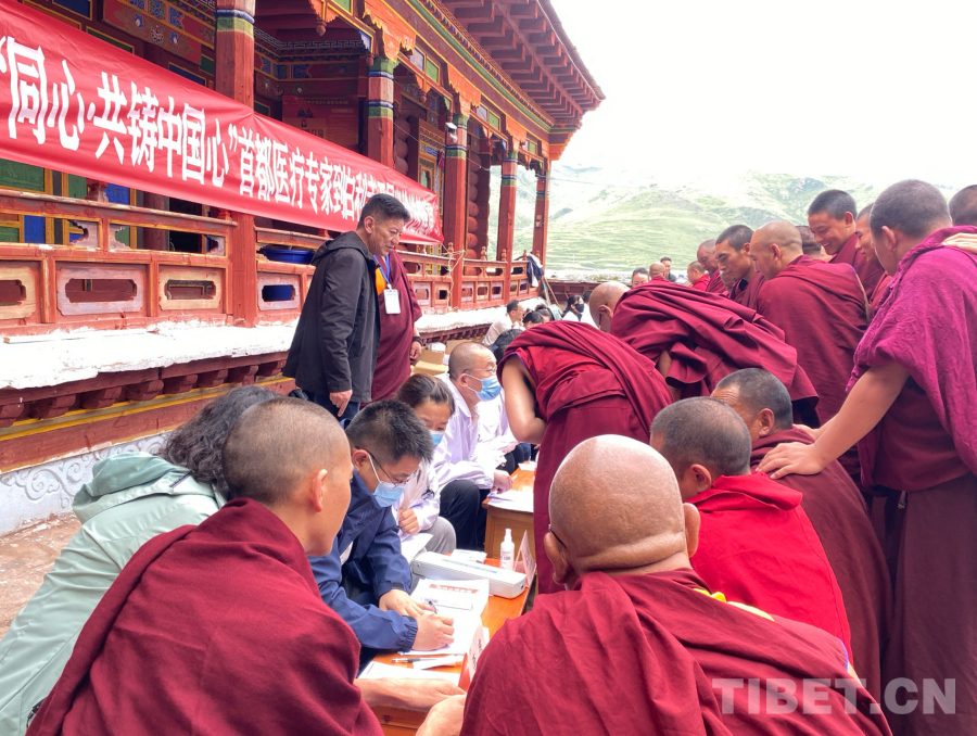 圖為同心公益志愿者醫(yī)生為白利寺僧人進(jìn)行義診活動(dòng) 攝影:格桑