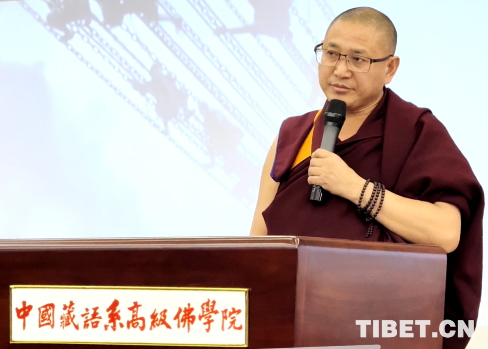 圖為白瑪扎西在中國藏語系高級佛學院課堂上發(fā)言 供圖:白瑪扎西