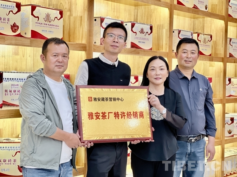 圖為頒發(fā)“雅安茶廠特許經(jīng)營商”牌匾現(xiàn)場(chǎng) 攝影:德吉卓瑪