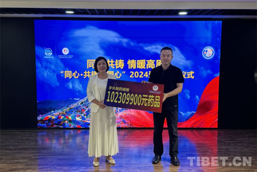 中國西藏網(wǎng)訊 8月5日,同心共鑄·情暖高原“同心·共鑄中國心”2024愛心捐贈儀式在北京舉行。步長制藥集團通過北京同心共鑄公益基金會向西藏、四川、云南、甘肅、青海等地的17個地市州的148個縣,無償捐贈呼吸道疾病防治藥——“宣肺敗毒顆?!?.78萬箱,共171.3萬盒,價值1.02億元。