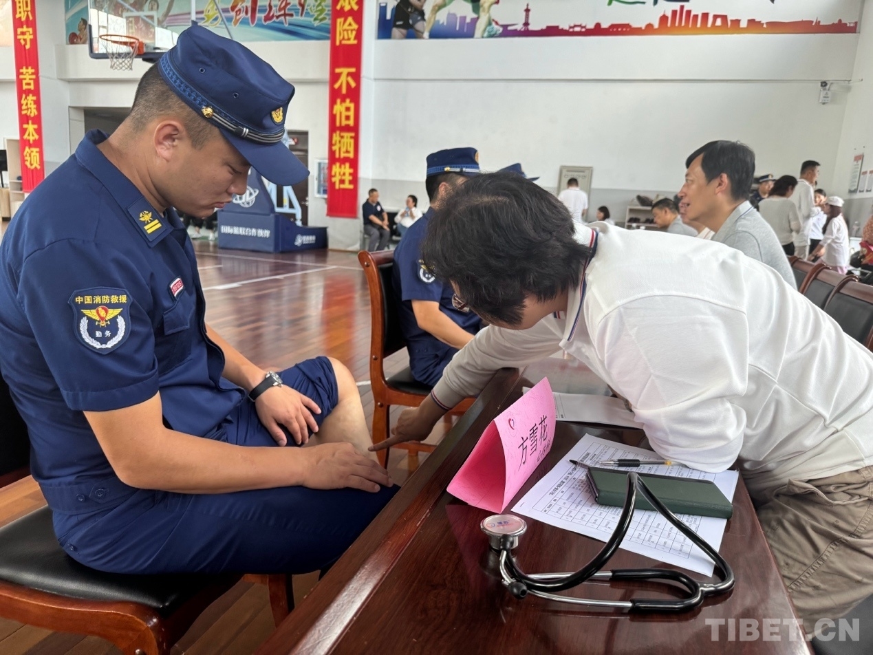 儀式結(jié)束后,志愿者們兵分兩路,一路為消防指戰(zhàn)員、武警官兵及退伍軍人開(kāi)展義診,為他們送去溫暖與關(guān)懷;另一路參與到了消防科目演練中,進(jìn)行了防水、防火、防震等應(yīng)急救援相關(guān)技能培訓(xùn)。
