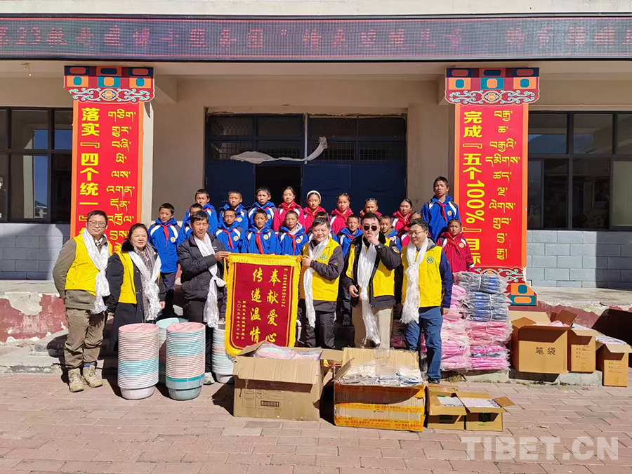2023年11月,作為北京市新聯(lián)會(huì)理事、石景山區(qū)新聯(lián)會(huì)會(huì)長(zhǎng)、朵云文化藝術(shù)服務(wù)中心主任,我第二次到西藏,隨公益組織雙閃車隊(duì)、援藏博士服務(wù)團(tuán)一起到日喀則市定日縣絨轄鄉(xiāng)完小,為這所邊境小學(xué)捐贈(zèng)了價(jià)值1000元的文具。