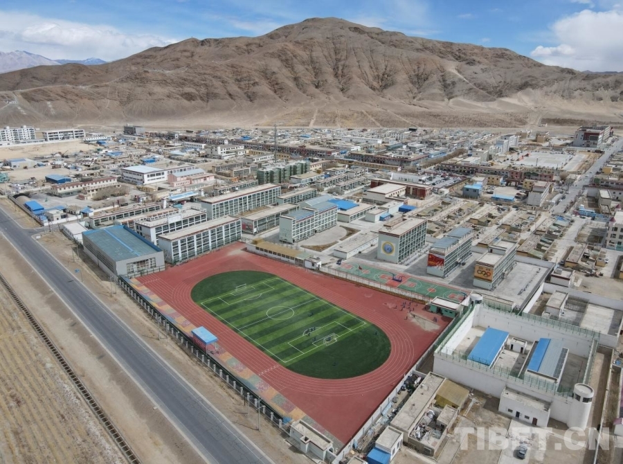 圖為河北援建的日土縣九年一貫制學(xué)校運(yùn)動(dòng)場