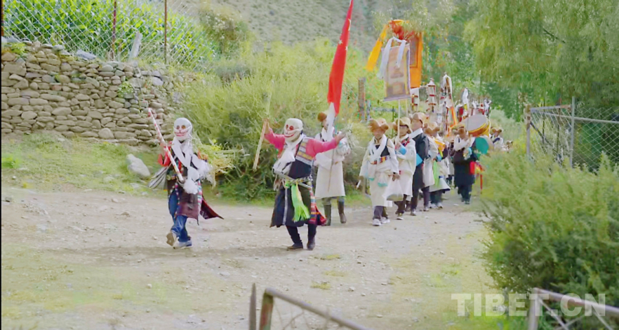 在望果節(jié)這一天,村里會(huì)選四位村民扮演成“土鍋杰日”,他們戴著面具,身穿“土鍋杰日”獨(dú)有的服飾走進(jìn)每家每戶表演“羌姆”舞祈求平安順?biāo)?、來年豐收。這個(gè)特別的儀式蘊(yùn)含著勞動(dòng)人民勤勞智慧、團(tuán)結(jié)互助、尊重自然的價(jià)值理念。