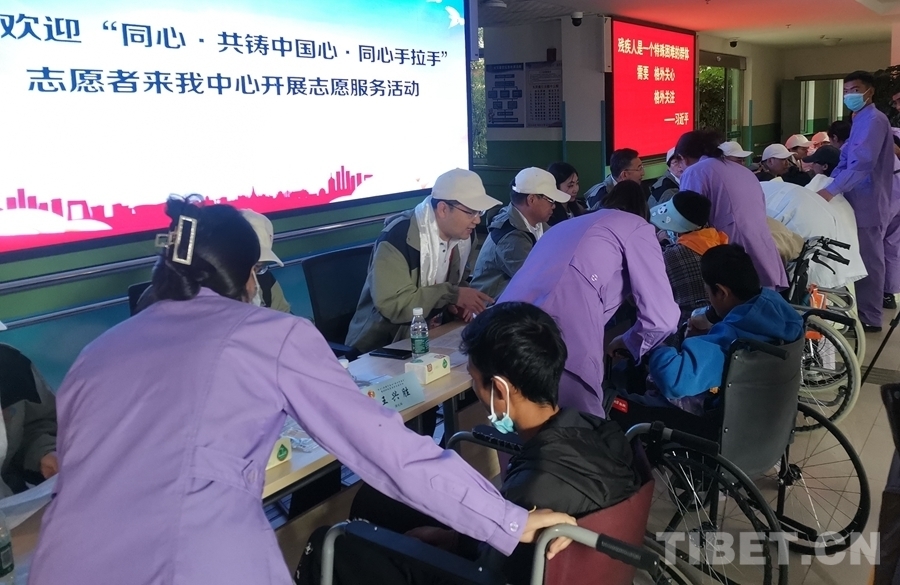 西藏自治區(qū)殘疾人托養(yǎng)中心主任李玉龍說,“‘同心·共鑄中國心·同心手拉手’的志愿者來到我們中心開展愛心助殘活動,送醫(yī)送藥送培訓,關(guān)愛特殊人群,在此我對所有的志愿者表示衷心的感謝,希望社會更多人關(guān)注殘疾人,幫助殘疾人?!?nbsp;