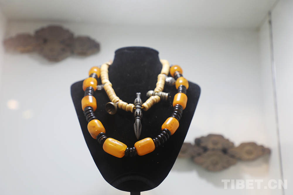藏式古珠飾品,色彩濃郁、造型獨特,透著與眾不同的區(qū)域文化風格和時代美,吸引很多游客駐足觀賞和驚嘆。