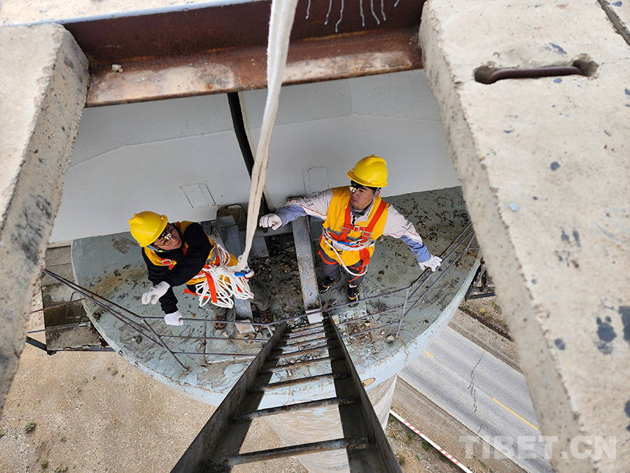 據(jù)介紹, 三岔河地段山高溝深,作業(yè)人員要在距離地面幾十米高的地方進(jìn)行檢查,還要進(jìn)入空心墩內(nèi)部攀爬檢測(cè),必須時(shí)刻注意安全防護(hù),他們重點(diǎn)對(duì)橋梁空心墩外觀、混凝土強(qiáng)度、鋼筋位置及保護(hù)層厚度全方位進(jìn)行檢測(cè)和掃描。經(jīng)過90分鐘的緊張作業(yè),作業(yè)人員圓滿完成了當(dāng)日最高圓形薄壁空心墩內(nèi)部的檢測(cè)任務(wù)。(中國(guó)西藏網(wǎng) 通訊員/陳少峰 文振軍)