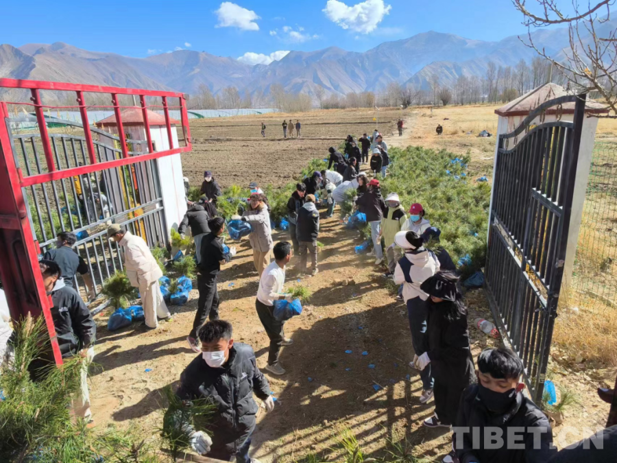 圖為張艾平帶領(lǐng)學生一起參與拉薩南北山綠化