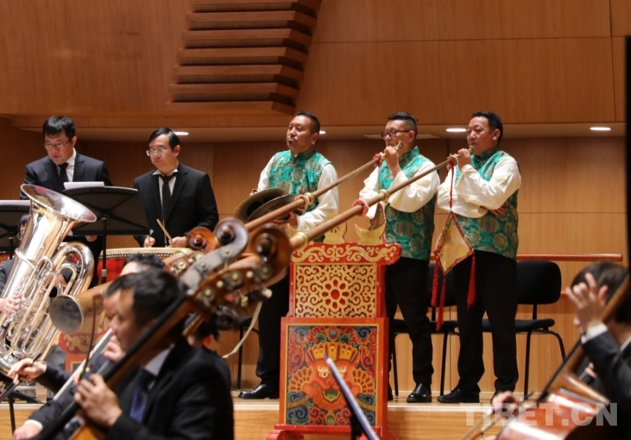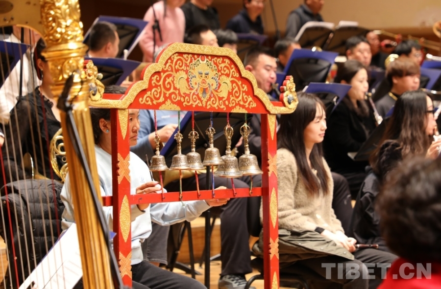 “我們交響樂當(dāng)中使用了不少民族樂器,有藏族的傳統(tǒng)樂器藏大號、藏鈸、扎木念、赤布(藏鈴),也有二胡、鼓、笛等等,這也使得作品跟其他樂團不一樣?!蹦岈斦f,“交響樂有了民族樂器的加入,這種中西結(jié)合讓作品國際范兒中有了民族風(fēng)味,這也是我們所做的一些創(chuàng)新和融合,也展現(xiàn)了西藏音樂特有的魅力?!?/p>