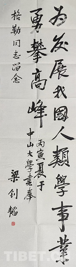 這次我給中大捐贈了珍藏已久的梁先生為我題寫的畢業(yè)贈言。他要我為發(fā)展我國人類學(xué)事業(yè)勇攀高峰,我知道以我的能力和年齡,今生不一定能攀登高峰,但我依然在努力,依然在奮斗。近二十多年來,我在一些大專院校兼任博士生導(dǎo)師,為培養(yǎng)中國馬克思主義藏學(xué)家和人類學(xué)家而辛勤耕耘,尤其是2011年從行政崗位退下來以后,我已經(jīng)全身心地投入到培養(yǎng)中國藏學(xué)和人類學(xué)接班人的教學(xué)工作中,不辜負(fù)梁釗韜導(dǎo)師的贈言和中大領(lǐng)導(dǎo)以及人類學(xué)老師們期望,為中國藏學(xué)和人類學(xué)的發(fā)展發(fā)揮余熱,我樂此不疲。至少我要對得起榮獲的兩個(gè)“第一”的光環(huán)吧。(中國西藏網(wǎng) 文/格勒 圖片均為作者提供)