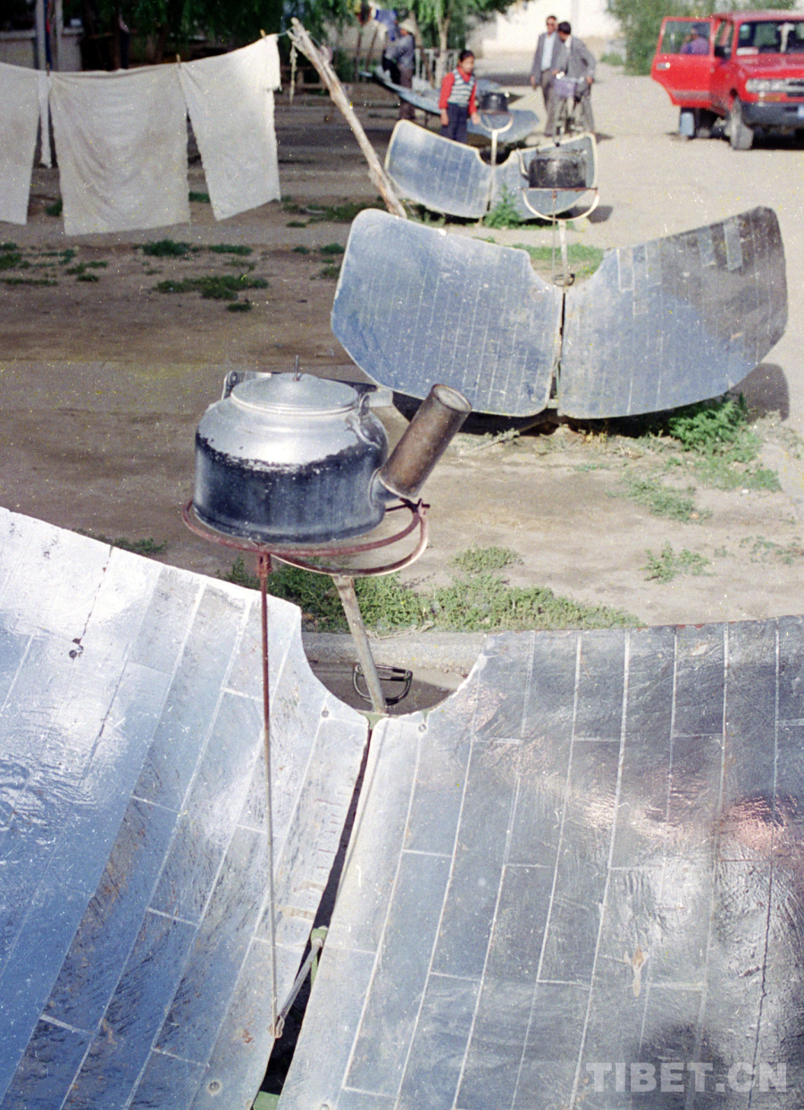 這讓我不禁想起1987年,我沿著青藏公路一路采訪進藏,在藏北高原房前屋后,見到大量正在使用特殊燒水裝置太陽灶的情景。