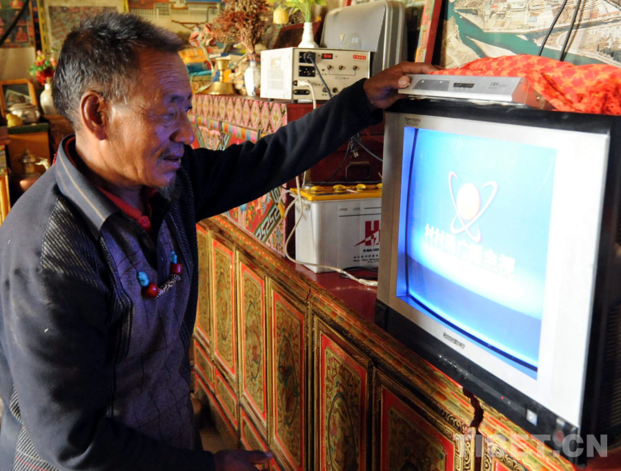 這是尼瑪縣文部鄉(xiāng)南村農民次成旦增在家里使用光伏發(fā)電設備,收看“村村通”廣播電視(唐召明2009年攝)
