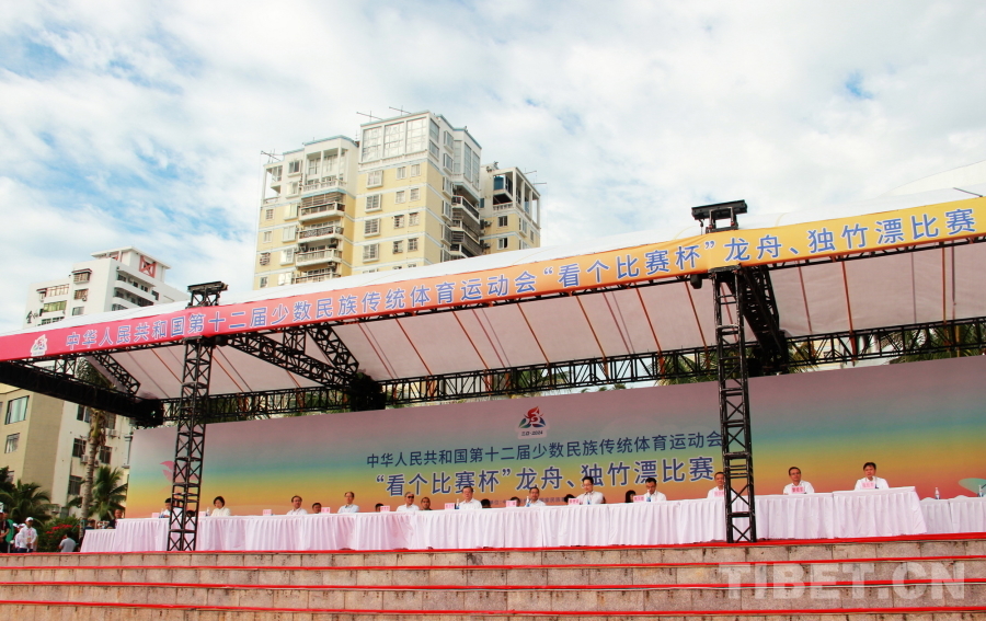 中國(guó)西藏網(wǎng)訊 11月23日,第十二屆全國(guó)少數(shù)民族傳統(tǒng)體育運(yùn)動(dòng)會(huì)(以下簡(jiǎn)稱運(yùn)動(dòng)會(huì))龍舟項(xiàng)目在海南省三亞市三亞河開(kāi)賽。