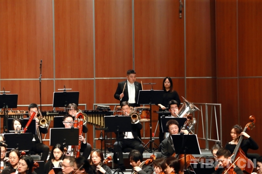 音樂會(huì)上,兩位藏族歌手演唱了交響樂主題曲《金橋》,歌曲高亢嘹亮、曲調(diào)悠揚(yáng)。藏戲、山歌等元素的加入,讓交響樂更加豐富,充滿了濃郁的民族風(fēng)情。
