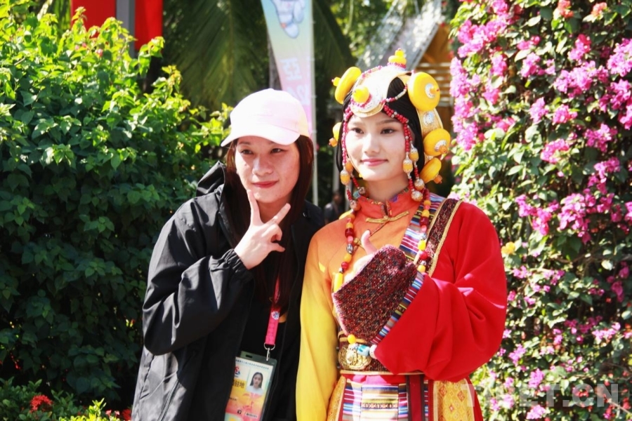 中國西藏網訊 11月26日,第十二屆全國少數民族傳統(tǒng)體育運動會民族大聯(lián)歡活動在海南省三亞市舉行?;顒訃@“民族大聯(lián)歡·天涯共此時”主題,分為歡迎儀式、游園部分、聯(lián)歡環(huán)節(jié)三個部分。其中,聯(lián)歡環(huán)節(jié)進行了由《心心相映》《山水相連》《熱情相擁》三個篇章組成的盛大文藝演出。(中國西藏網 記者/劉莉)