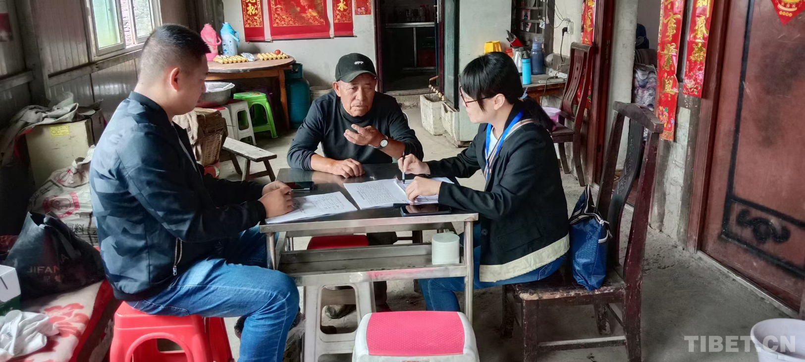 圖為援藏期間,王燕(右一)正在走村入戶進行調(diào)研 受訪者供圖