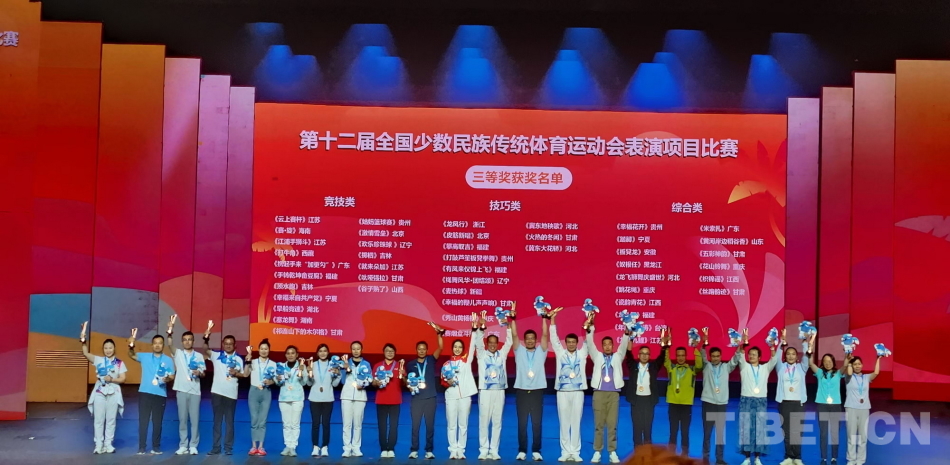 中國(guó)西藏網(wǎng)訊 11月29日晚,第十二屆全國(guó)少數(shù)民族傳統(tǒng)體育運(yùn)動(dòng)會(huì)(以下簡(jiǎn)稱“運(yùn)動(dòng)會(huì)”)表演項(xiàng)目頒獎(jiǎng)晚會(huì)在海南三亞舉行。本屆運(yùn)動(dòng)會(huì)表演項(xiàng)目共計(jì)170個(gè),共決出54個(gè)一等獎(jiǎng)。其中,西藏隊(duì)獲得3個(gè)一等獎(jiǎng)。