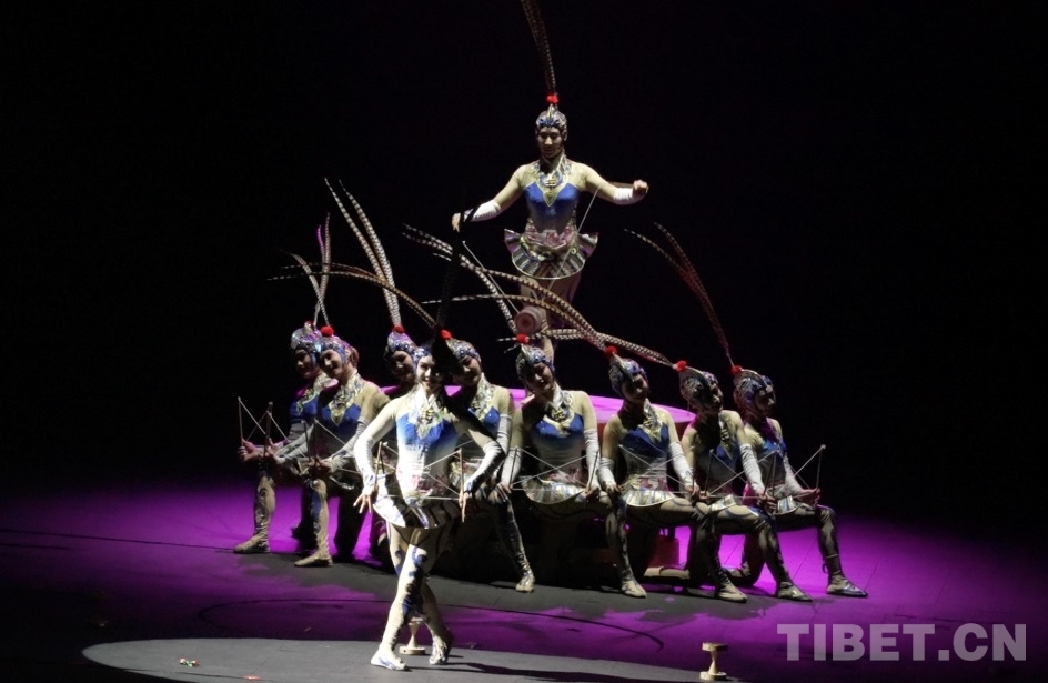 圖為第十二屆全國(guó)少數(shù)民族傳統(tǒng)體育運(yùn)動(dòng)會(huì)表演項(xiàng)目頒獎(jiǎng)晚會(huì)現(xiàn)場(chǎng),北京隊(duì)表演《俏花旦》 攝影:德吉卓瑪