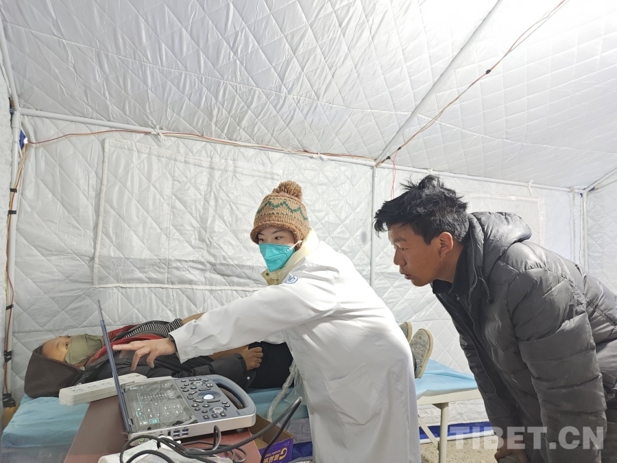 1月13日,記者來到定日縣曲洛鄉(xiāng)仁果村受災(zāi)群眾活動板房安置點(diǎn),看到了設(shè)在這里的阜康醫(yī)院臨時(shí)醫(yī)療點(diǎn),副主任醫(yī)師全雄杰正在為村里的小男孩看病,作為“蹲點(diǎn)”醫(yī)生,他已在這里服務(wù)2天,“咳嗽嗎?流鼻涕嗎?嗓子疼嗎?”作為朝鮮族的全雄杰,正耐心地用藏語跟小孩交流的畫面著實(shí)讓人感動。