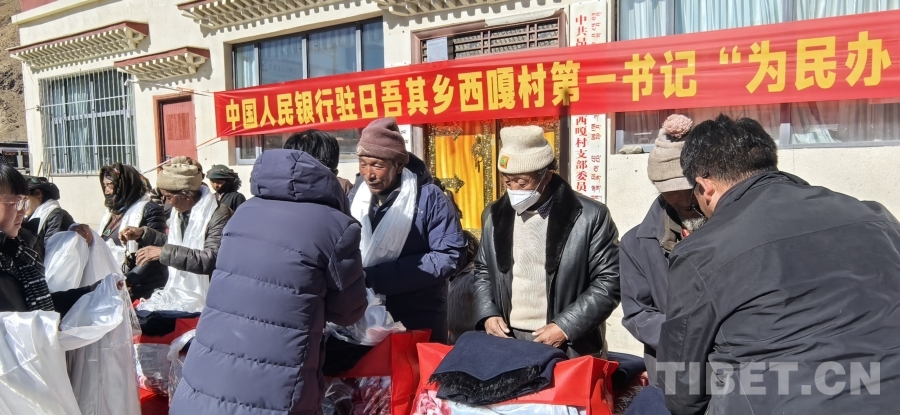 本次活動面向日吾其鄉(xiāng)西嘎、措嘎、普夏、日蘇、央確5個駐村點65歲(含)以上的老年人,各村第一書記提前摸底調查,精準鎖定幫扶對象,制作慰問對象花名冊?;顒赢斕?,為164人每人發(fā)放了棉被、毯子和藏式圍裙等抗寒物資,為措嘎村村委會購置了一臺用于維修管道和日常停電后短暫供電的發(fā)電機,累計金額達57280元,為群眾送上了冬日里的問候與溫暖。