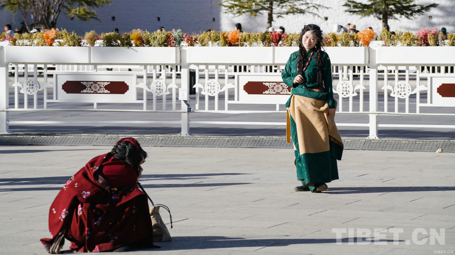 圖為游客在布達拉宮廣場拍攝藏裝寫真 攝影:趙振宇