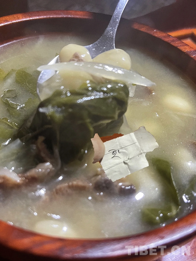 到了晚上,家人們會(huì)圍聚在一起吃“古突”——一種面疙瘩湯。在制作過(guò)程中,我們會(huì)在面皮里包一些有著特殊寓意的物品,例如:辣椒、羊毛、鹽巴、花椒等。在吃飯時(shí),吃到不同東西的人要當(dāng)場(chǎng)說(shuō)出自己吃到的是什么,并對(duì)其中的寓意做講解,同時(shí)表達(dá)自己在新的一年的愿望、期盼和目標(biāo)。這個(gè)活動(dòng)不僅給家人們帶來(lái)祝福,最重要的是增添了歡樂(lè)的氛圍。