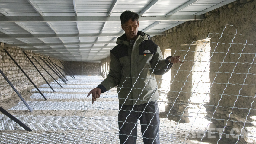 圖為定日縣長所鄉(xiāng)嘎旦村村委會主任頓珠向記者介紹村集體畜圈的規(guī)劃 攝影:趙振宇