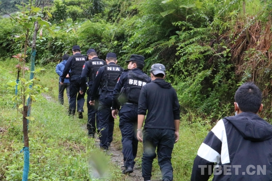 圖為西藏林芝邊境管理支隊(duì)背崩邊境派出所民警與群眾開展護(hù)林巡邏