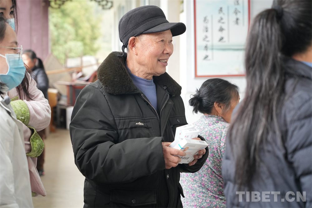 義診結束后,醫(yī)療志愿者們分組到村里入戶慰問、送藥,并面對面指導村民如何用藥。(中國西藏網 記者/王茜 邊子捷)