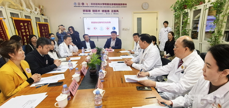 圖為北京朝陽(yáng)醫(yī)院黨委書(shū)記、理事長(zhǎng)紀(jì)智禮介紹醫(yī)院有關(guān)情況北京朝陽(yáng)醫(yī)院供圖