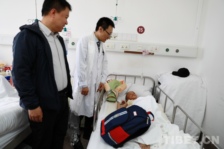 中國(guó)西藏網(wǎng)訊 4月1日,“同心·共鑄中國(guó)心”組委會(huì)執(zhí)行主席金大鵬一行來(lái)到首都醫(yī)科大學(xué)附屬北京朝陽(yáng)醫(yī)院,探望在這里接受救治的5名四川省甘孜藏族自治州石渠縣脊柱側(cè)彎患兒,了解手術(shù)及恢復(fù)情況,并對(duì)醫(yī)院的全力治療表示感謝。