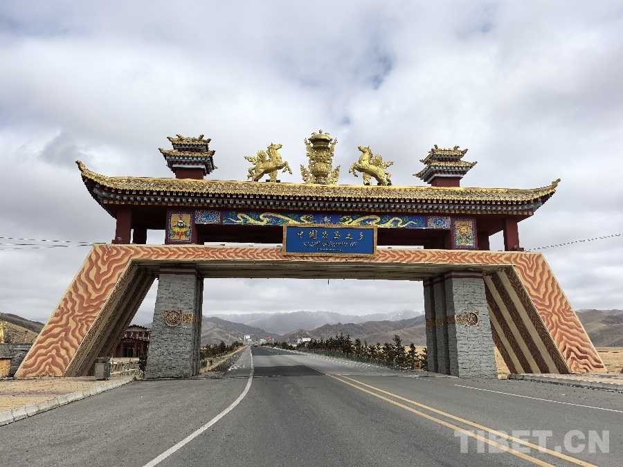 圖為瑪曲縣的“中國(guó)賽馬之鄉(xiāng)”牌樓 攝影:瑪吉