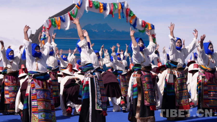 本次納木錯開湖日以歌舞為媒,盡情抒發(fā)對大自然的禮贊,《牧歌贊靈》《湖牧畫意》《圣湖戀曲》三章文藝表演將整個活動推向高潮。身披牦牛氆氌的牧人身影、踏雪而歌的少女形象、象征愛情與信仰的傳說,交織成一幅幅詩意畫卷,深情演繹人與自然、信仰與愛情的動人篇章。