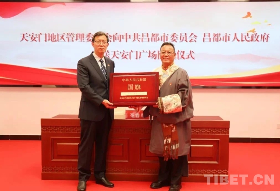 這面由北京市人民政府天安門地區(qū)管理委員會(huì)向昌都市委、市政府贈(zèng)送(編號(hào)2020—0094)的天安門廣場(chǎng)國旗,在西藏自治區(qū)成立60周年和昌都解放75周年前夕,從首都北京來到了邊疆,極大激發(fā)了昌都全市上下的愛國榮譽(yù)感和強(qiáng)國使命感,激勵(lì)各族干部群眾砥礪前行、感恩奮進(jìn)。(中國西藏網(wǎng) 記者/王茜 陳衛(wèi)國)