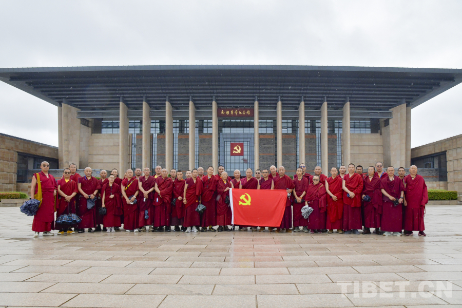 中國西藏網(wǎng)訊 清晨的浙江嘉興南湖煙雨朦朧,來自西藏佛學院的師生們著紅色僧裝駐足于紅船畔,聆聽講解員動情講述1921年夏日的那場歷史性會議?!熬褪窃谶@樣一艘小船上,代表們通過了黨的第一個綱領和決議,莊嚴宣告中國共產黨的誕生?!睕]有中國共產黨就沒有新中國,沒有中國共產黨也就沒有社會主義新西藏。從浙江嘉興紅船到上海中共一大會址,西藏佛學院師生們重走“一大”路,重溫黨的歷史,感受中國共產黨領導下西藏發(fā)展進步、人民幸福安康的偉大精神力量。