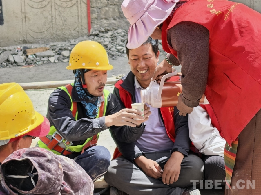 在白瑪村,黨員們自發(fā)組成志愿服務(wù)隊(duì),用實(shí)際行動(dòng)詮釋“中華民族一家親”。他們將精心熬制的酥油茶和洗凈切好的西瓜,送到了工地。工人們與村民們席地而坐,一邊品著酥油茶、吃著清甜西瓜,一邊親切地拉著家常。村支書次多動(dòng)情地說:“施工隊(duì)千里迢迢來幫我們重建家園,送點(diǎn)茶水、西瓜表達(dá)心意,是應(yīng)該的!”