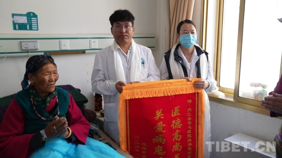 中國(guó)西藏網(wǎng)訊 近日,西藏日喀則市崗巴縣中心醫(yī)院眼科收到了定結(jié)縣央珍的錦旗。因長(zhǎng)期被視力模糊問(wèn)題困擾,央珍慕名來(lái)到崗巴縣中心醫(yī)院眼科治療?!笆且晃挥H戚推薦我來(lái)的,她之前在這里做的眼科手術(shù)效果非常好?!比缃褚暳净謴?fù)正常的央珍感激地說(shuō)道。