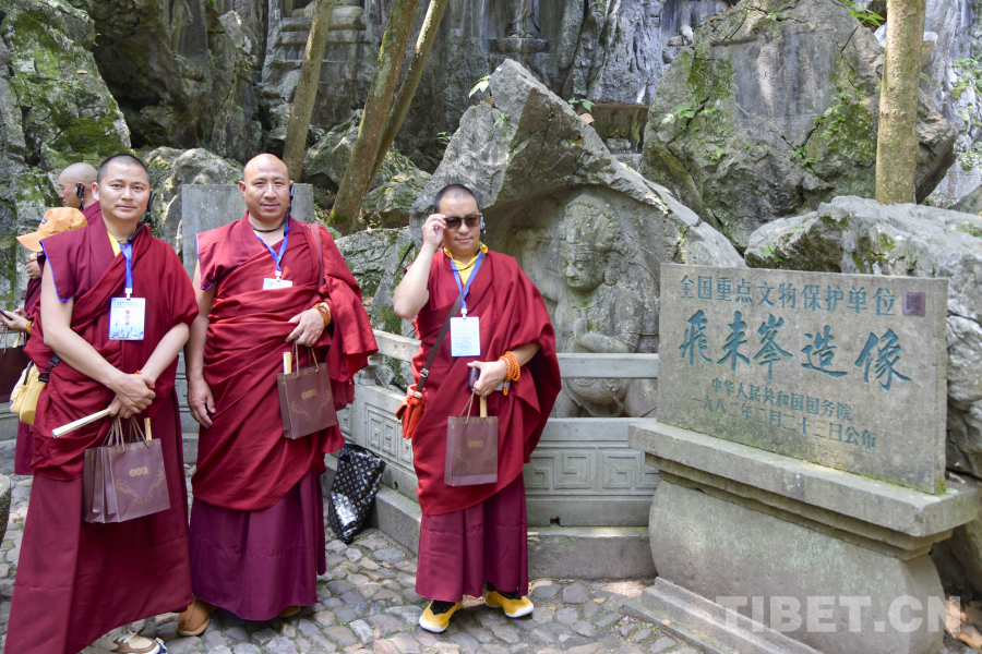 圖為西藏佛學(xué)院師生在杭州參觀飛來峰造像 攝影:趙振宇