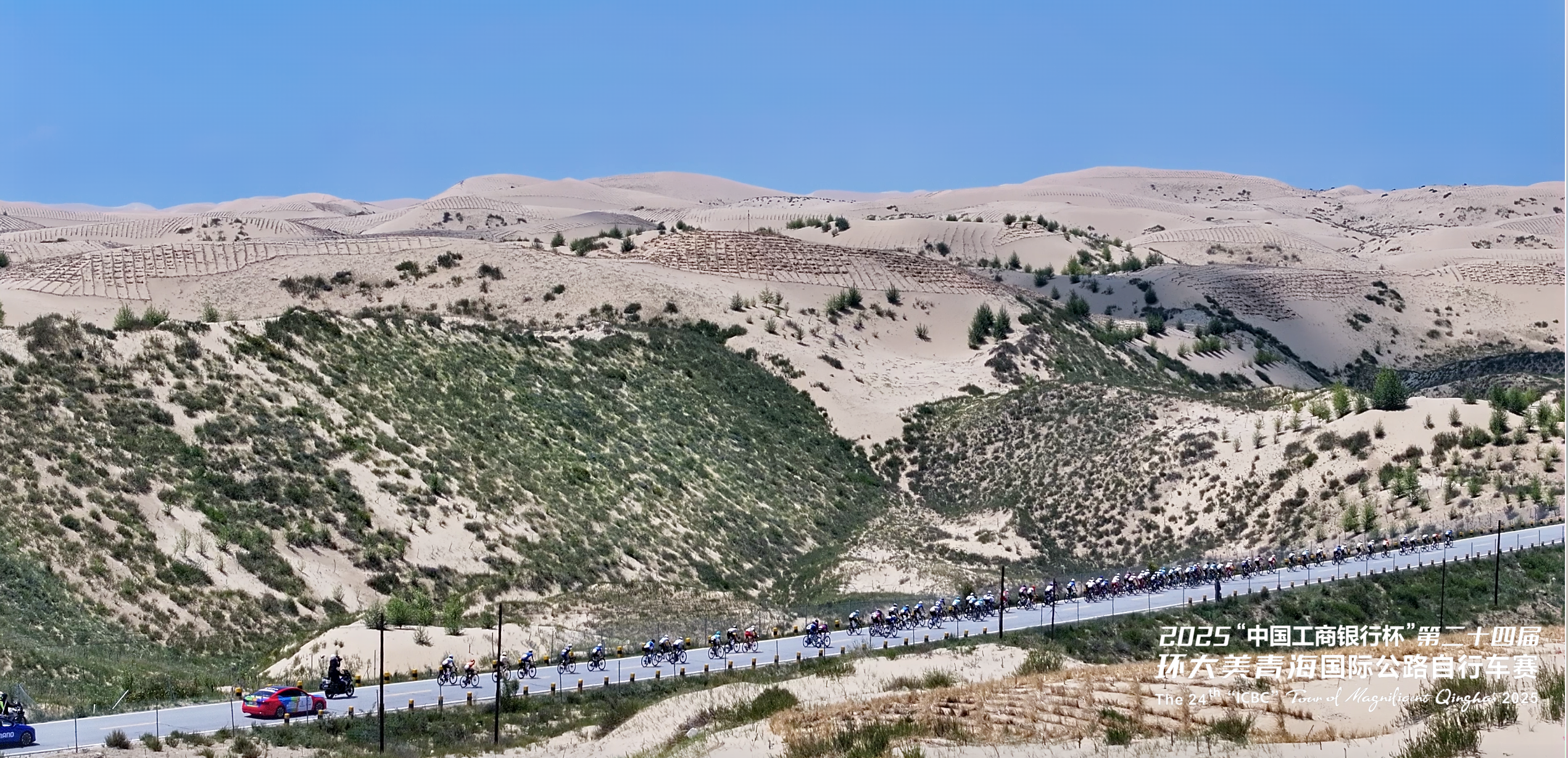 第二十四屆環(huán)青賽第六賽段——?jiǎng)偛?共和賽段,是本屆賽事距離最長(zhǎng)的賽段。車隊(duì)出發(fā)后不久便駛?cè)胫沫h(huán)湖公路,這段標(biāo)志性賽程承載著環(huán)青海湖賽事的精髓和回憶。作為環(huán)青賽的前身,環(huán)湖賽段以其獨(dú)特魅力吸引著全球騎行愛好者,人們沿著賽事路線打卡騎行,盡情領(lǐng)略青海湖畔的壯美風(fēng)光。