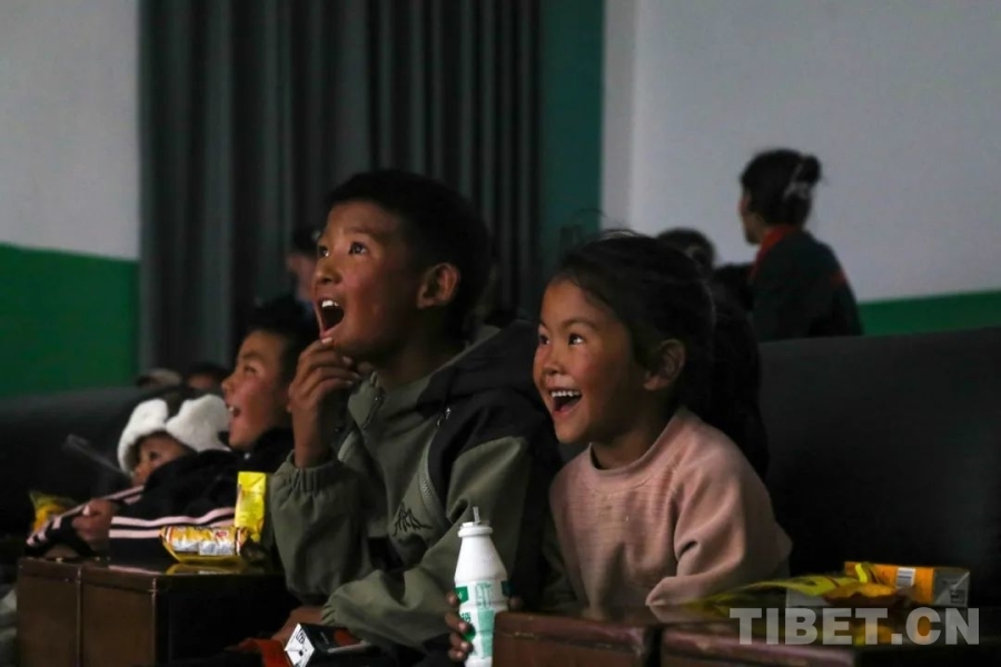 圖為孩子們?cè)谟^看電影