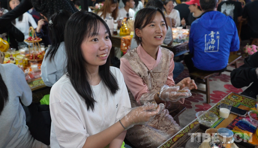 “讓孩子們交朋友、多交流。”這也是青海省政協(xié)常委、本次研學(xué)團(tuán)團(tuán)長(zhǎng)吳漢忠最初的想法。在位于海晏縣的文迦牧場(chǎng)的星空下,這場(chǎng)“廣度”之旅迎來(lái)溫暖篇章。海北藏族自治州的青少年與香港青少年們圍坐在一起,手把手教香港的朋友制作糌粑,還熱情招呼大家喝奶茶、跳鍋莊,自豪地介紹起自家草原上的牛羊。“糌粑就是要用手這樣順時(shí)針或者逆時(shí)針揉搓,最后成團(tuán),就能吃啦。還可以蘸一蘸我們的奶茶再吃?!毕愀蹖W(xué)生們也積極回應(yīng)著,相互用“扎西德勒”打著招呼,吃著親手制作的糌粑。有人驚喜發(fā)現(xiàn)“這個(gè)糌粑味道好像我家鄉(xiāng)的芝麻糖啊,好香好甜”。