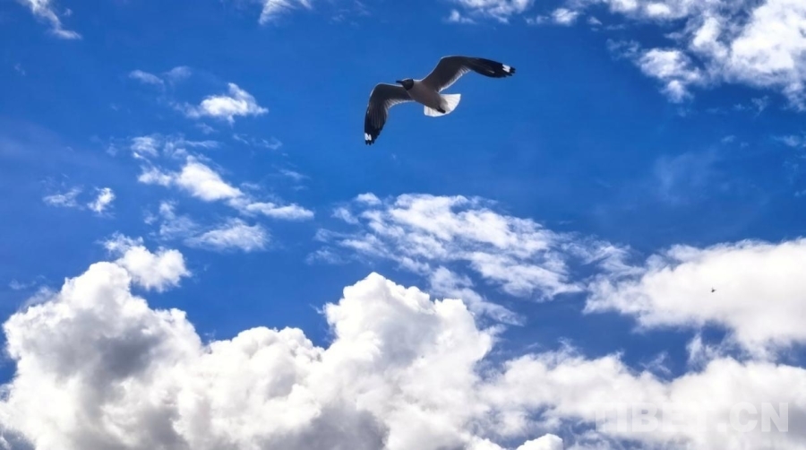 圖為拉薩兩島內(nèi)河綠色生態(tài)廊道一隅,水鳥在天空中飛過 攝影:劉莉