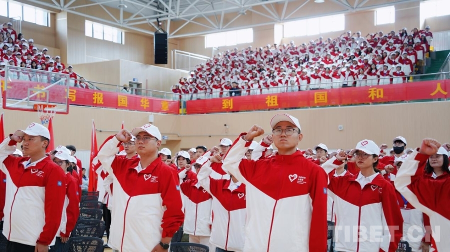 中國西藏網(wǎng)訊 7月29日,激昂的旋律回蕩在拉薩,一場莊嚴的出征儀式在此舉行。來自北京、河北、四川、湖南、上海、西藏等全國22個省(自治區(qū)、直轄市)的1200余名大學生志愿服務西部計劃服務西藏專項志愿者整裝集結,滿懷壯志,即將奔赴西藏自治區(qū)7市(地)基層一線,開啟為期1至3年的志愿服務新征程。其中,研究生支教團成員達124人。